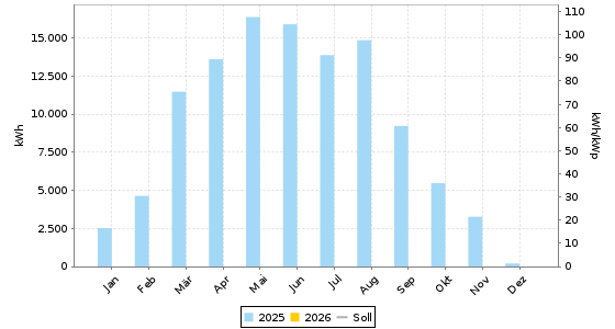 Energie = 0,00 kWh (0,00 kWh/kWp) | CO2-Vermeidung = 0,00 kg