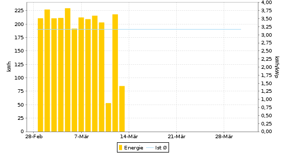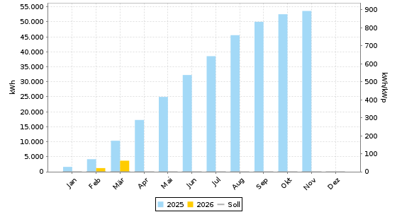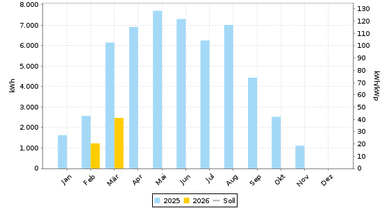 Energie = 3.702,72 kWh (61,71 kWh/kWp) | CO2-Vermeidung = 2.221,63 kg